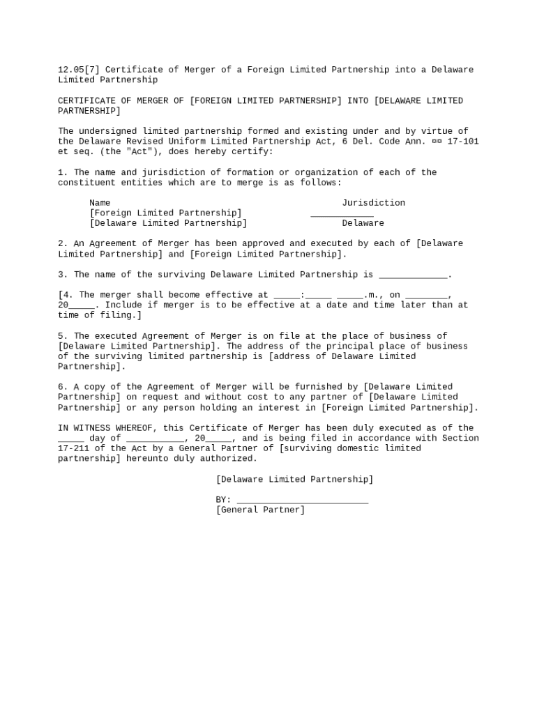 Get the free Certificate of Merger of a Foreign Limited Partnership into a Delaware Limited Partn...