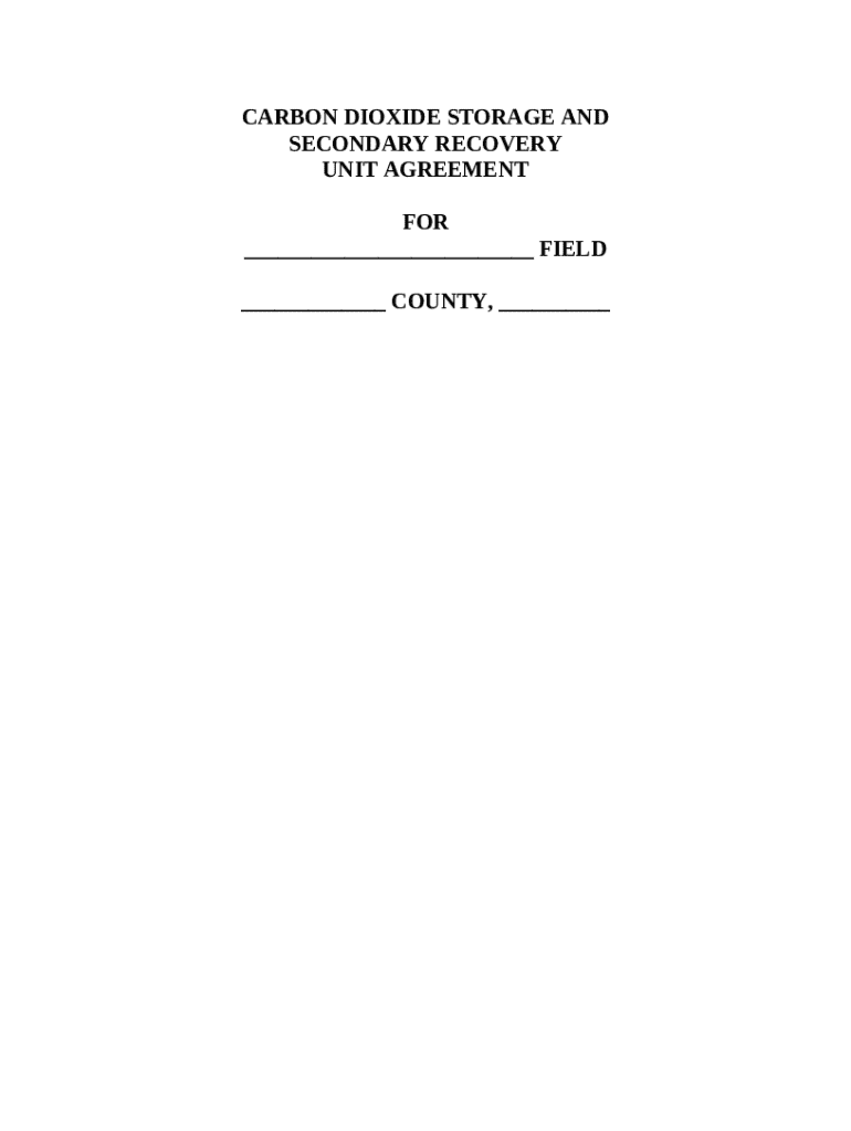 This form is a carbon dioxide storage and secondary recovery unit agreement.