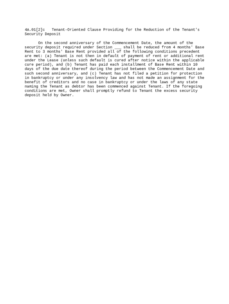 Get the free Tenant Oriented Clause Providing for the Reduction of the Tenant Security Deposit te...