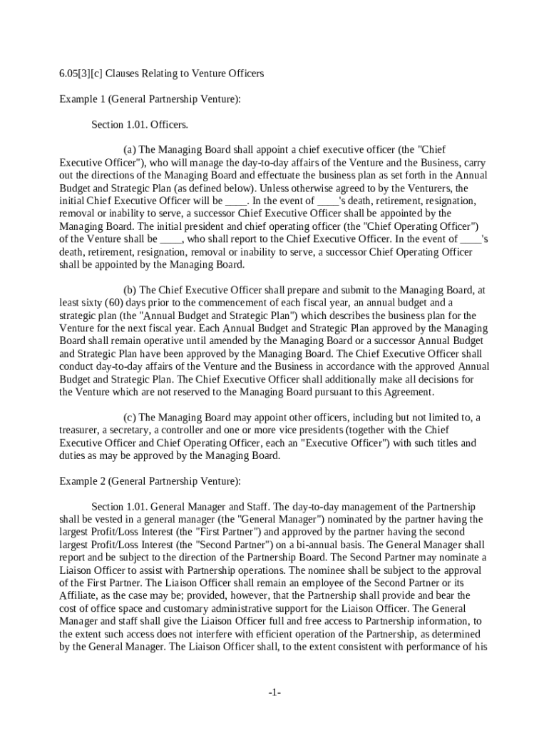 This sample form, containing Clauses Relating to Venture Officers document, is usable for corporate/business matters. The language is easily adaptable to fit your circumstances. You must confirm compliance