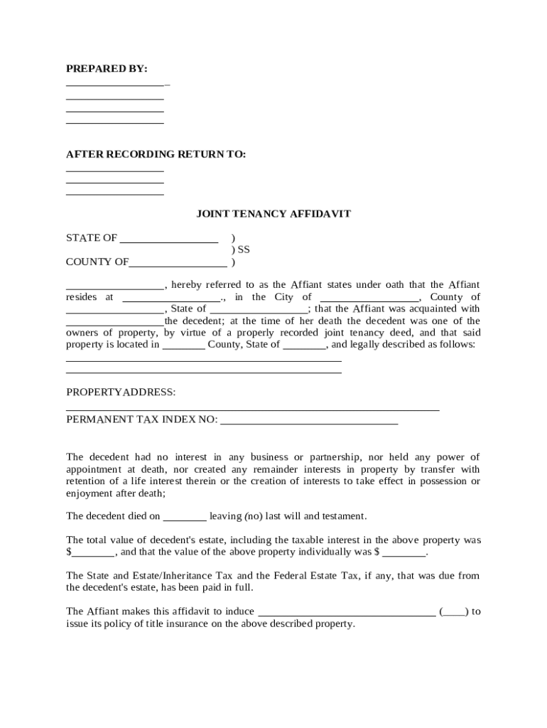 This Affidavit form is used to evidence that one of the tenants to a joint tenancy is deceased.