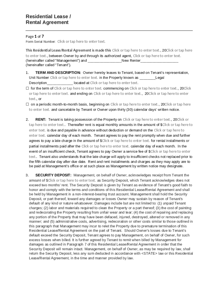 Get the free Residential Lease - Rental Agreement template
