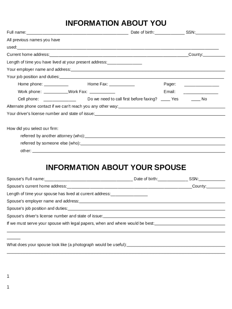 Divorce information about you is a document that collects personal details relevant to the divorce process.
