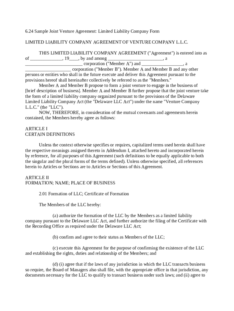 Filling out a sample joint venture agreement form involves outlining specific details, including the roles of each member, business objectives, and legal structure. This guide will navigate you through the essential components and best practices to ensure a solid foundation for your joint venture.