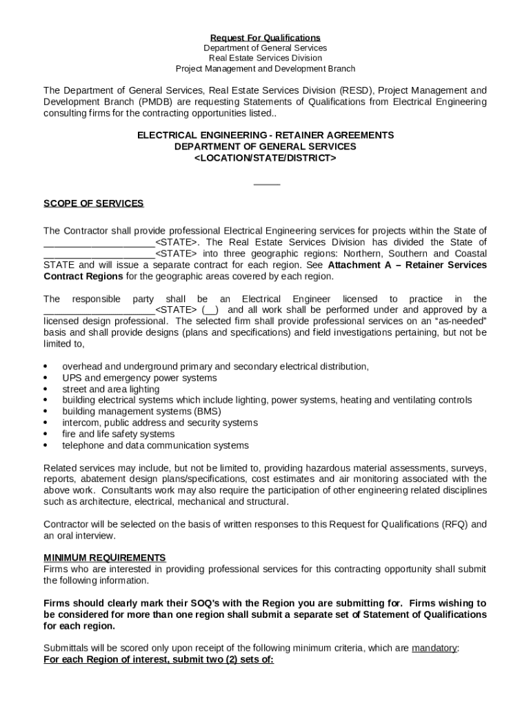 A Request for Qualifications (RFQ) is a document used to solicit qualifications from potential contractors. Its purpose is to identify qualified firms that can meet specific project needs, particularly in sectors like Electrical Engineering. Understanding when and why an RFQ is issued can significantly impact the success of your submission.