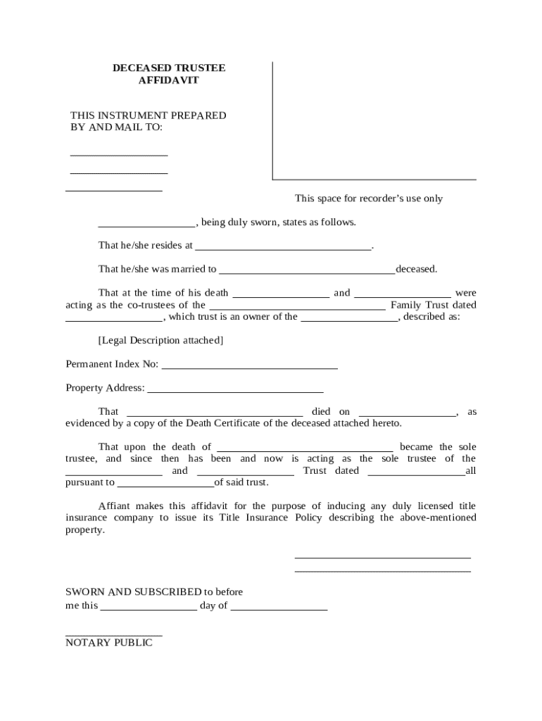 Filling out a deceased trustee affidavit form correctly is crucial for smooth estate management. This guide provides a comprehensive overview to ensure that you understand the affidavit’s significance and how to complete it effectively.