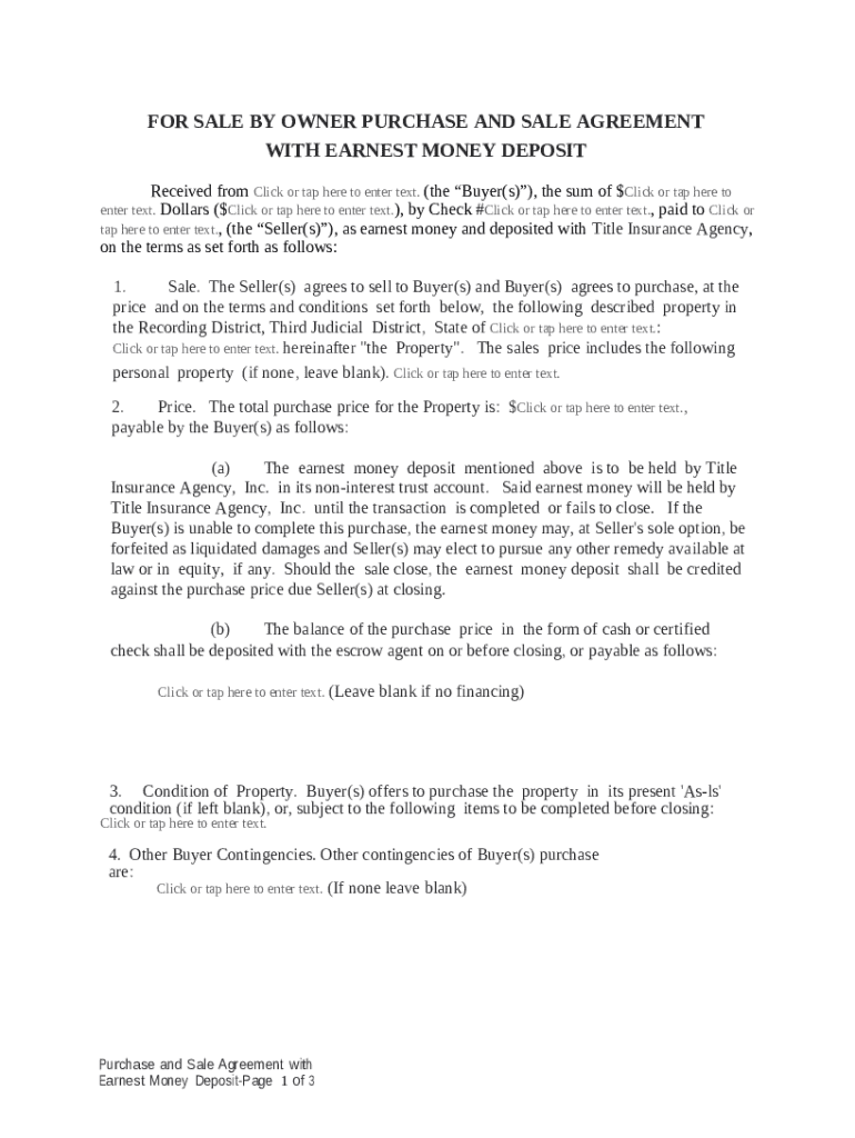 Get the free For Sale by Owner Purchase and Sale Agreement with Earnest Money Deposit template