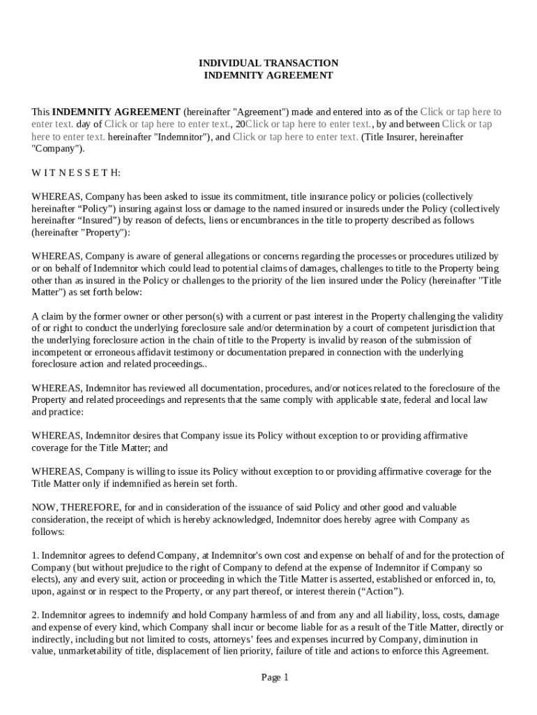 Comprehensive Guide to the Individual Transaction Indemnity Agreement Form