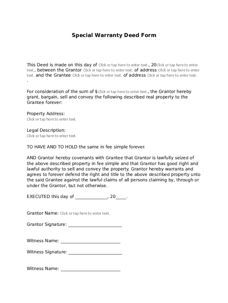 Get the free Special Warranty Deed template