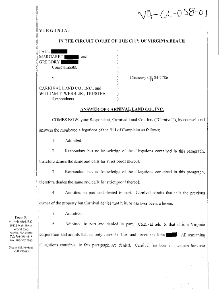 Get the free A02 Answer to Complaint for Preliminary and Permanent Injunction