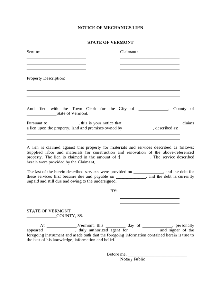A mechanics lien, also known as a construction lien, is a legal claim against a property for unpaid work or materials. This tool is essential for contractors and suppliers as it allows them to enforce payment rights when a project owner fails to settle their obligations. In Vermont, state-specific laws dictate how these liens are governed, ensuring both contractors and property owners understand their respective rights and responsibilities.