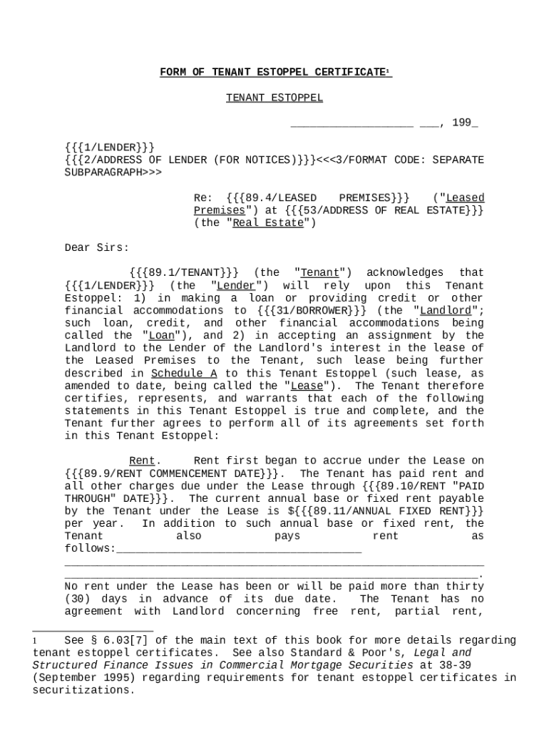 What is form of tenant estoppel