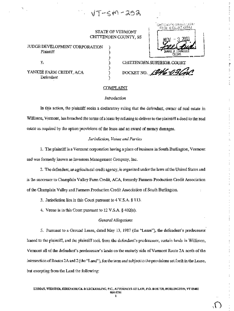 Get the free Complaint for Breach of Lease for Refusal to Deliver Deed