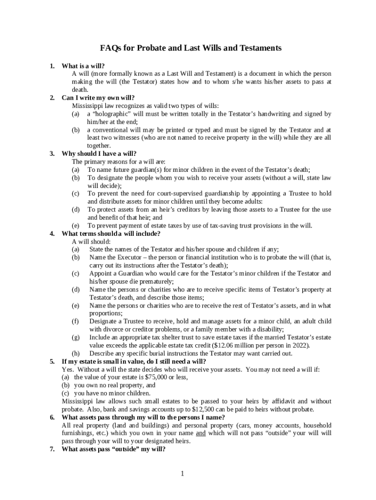 Get the free FAQs for Probate and Last Will and Testaments template