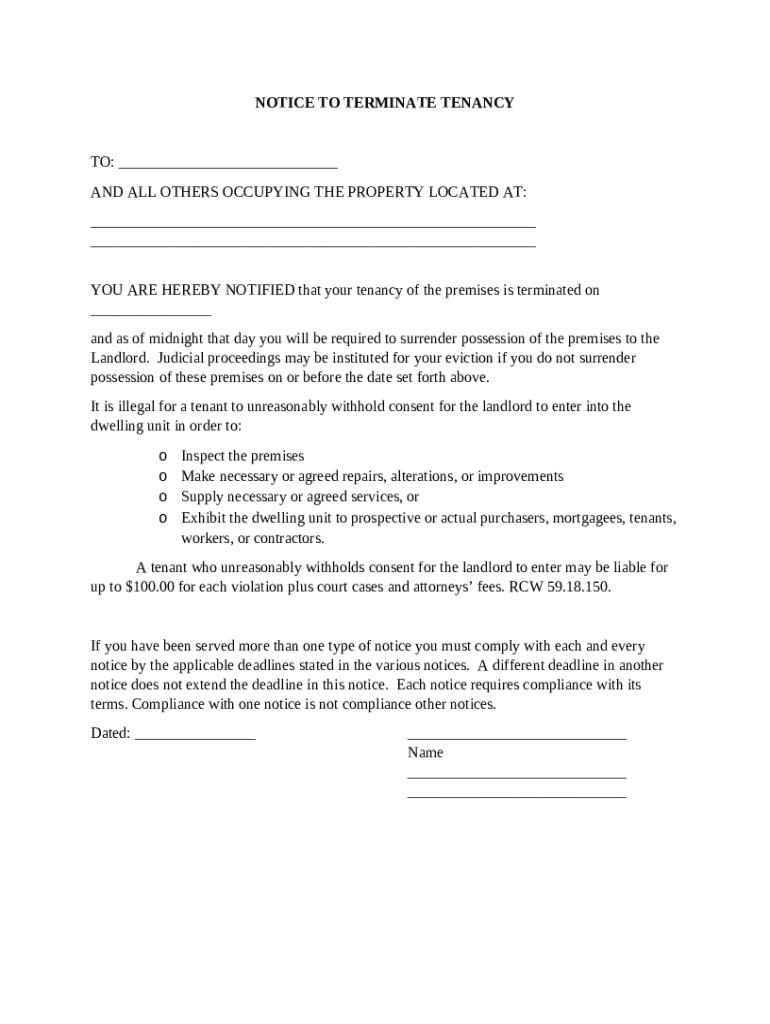 Get the free Notice to Terminate Tenancy template