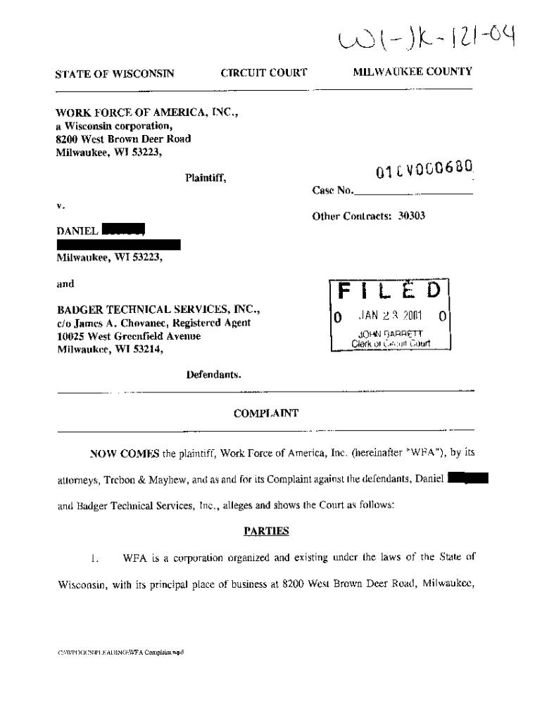 A02 Complaint Against Employee and New Employer for Breach of Employment Agreement Noncompete and Confidentiality Clauses