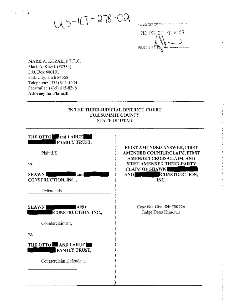Get the free A02 First Amended Answer, Counterclaim, Crossclaim, and Third-Party Claim