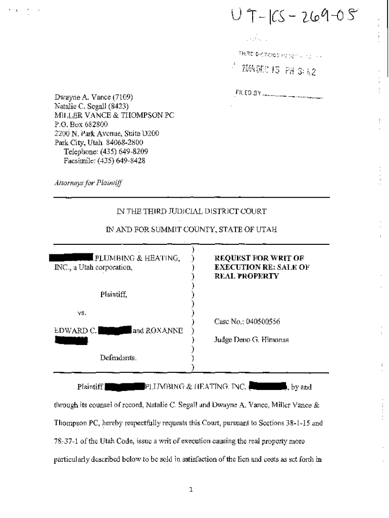 A05 Request for Writ of Execution regarding Sale of Real Property