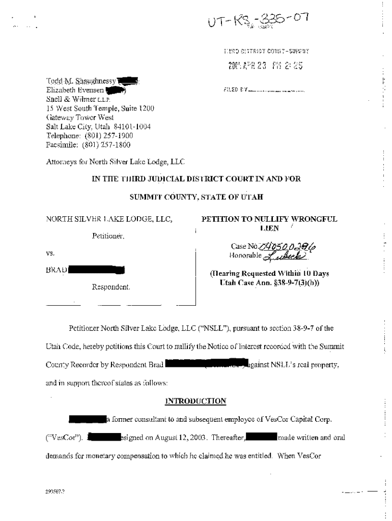 Get the free A01 Petition to Nullify Wrongful Lien