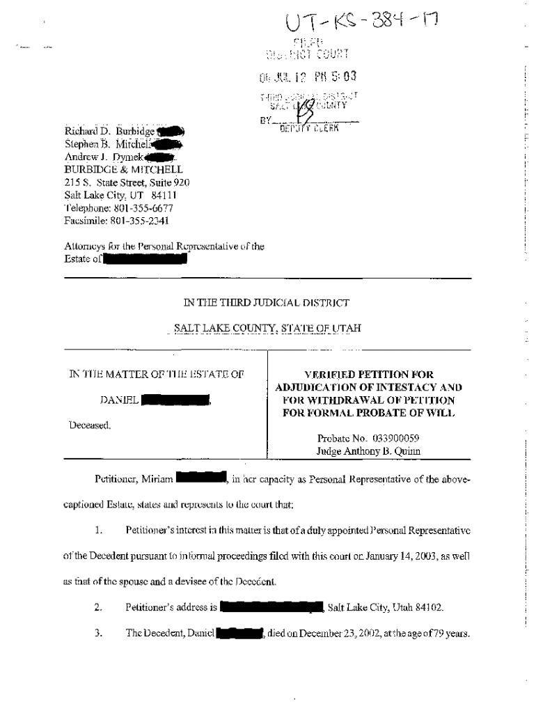 Get the free A17 Verified Petition for Adjudication of Intestacy and for Withdrawal of Petition f...