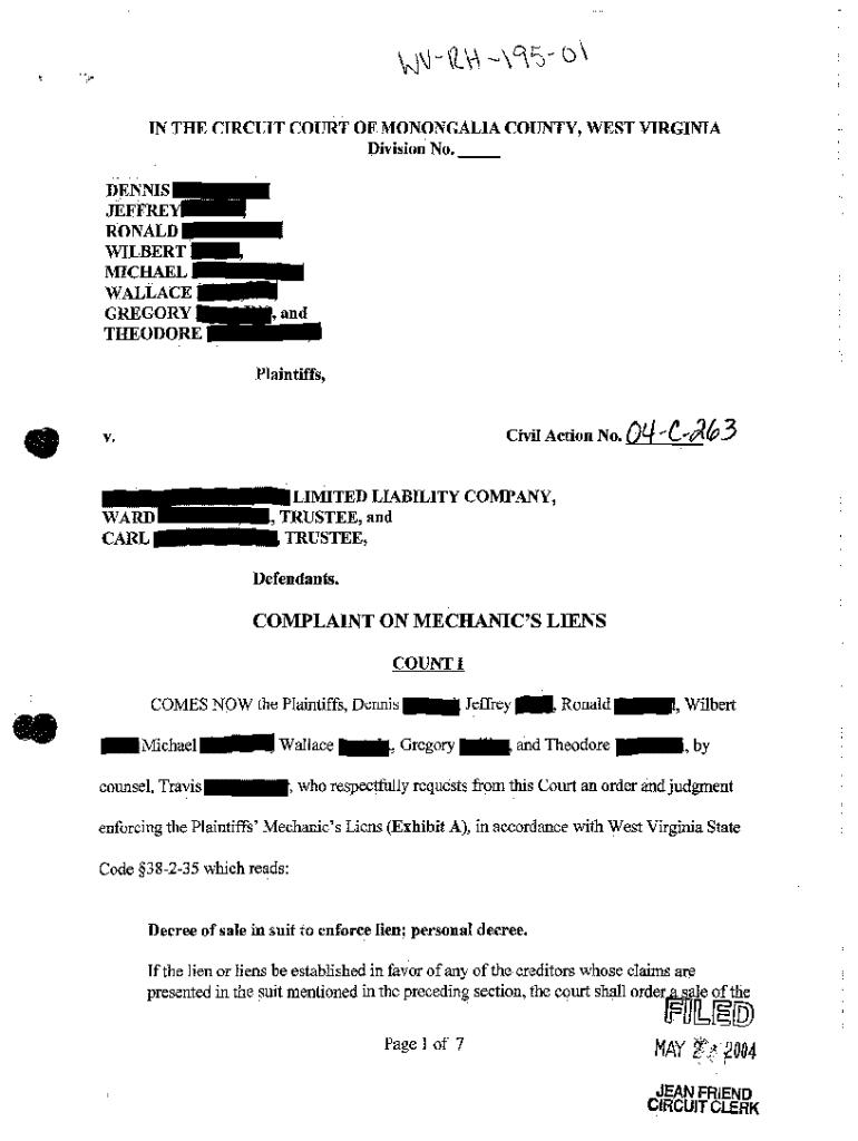 A01 Complaint on Mechanic's Liens regarding Enforcement