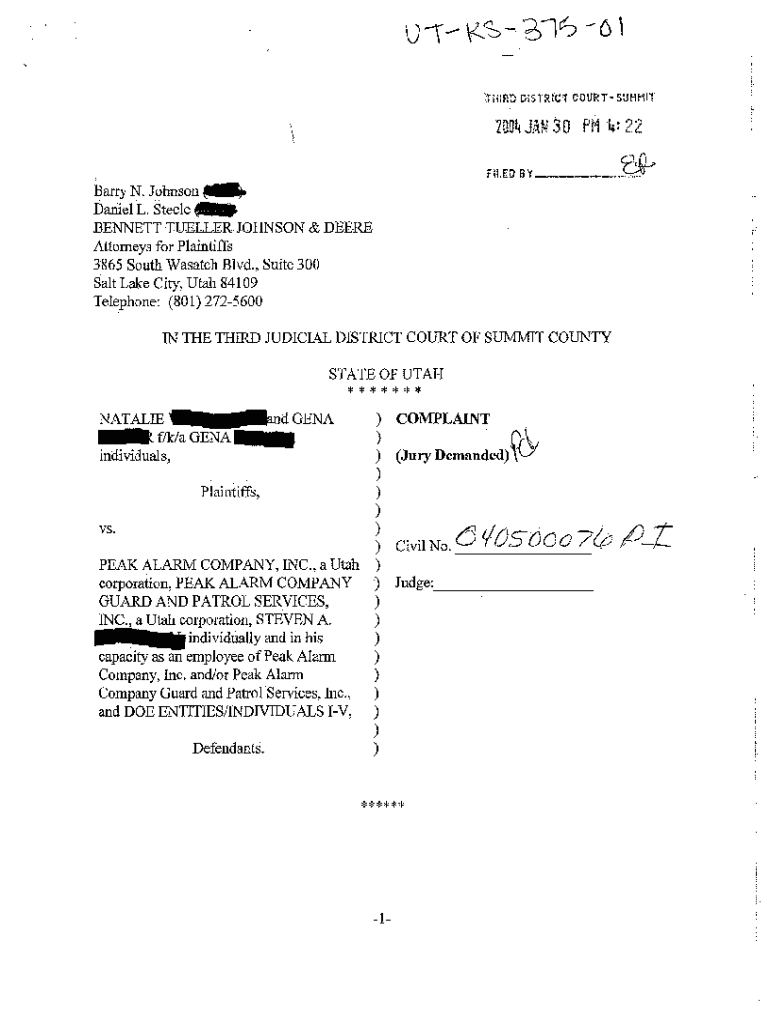 A01 Complaint - Rear-End Collision, Negligent Operation of Motor Vehicle Resulting in Personal Injury