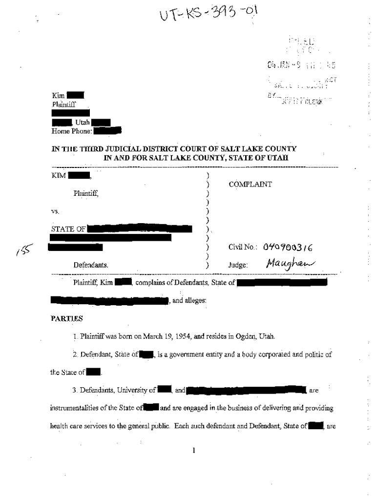 A01 Complaint - Medical Malpractice - Failure to Follow Proper Standard of Care