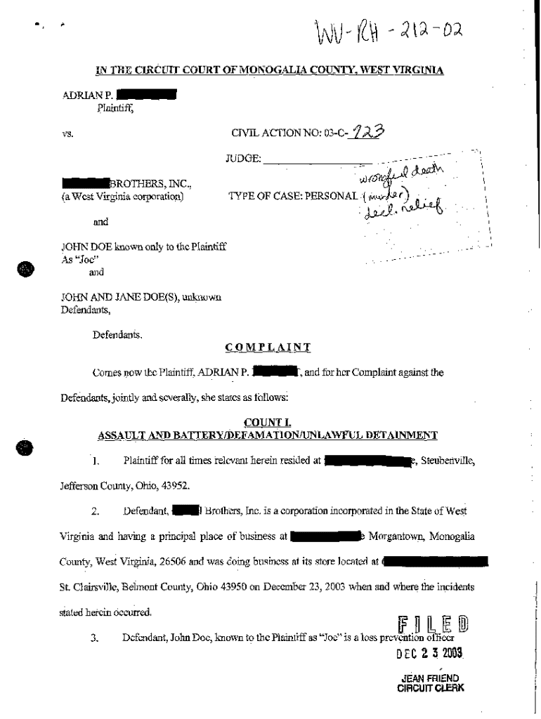Get the free A02 Compliant for Assault and Battery
