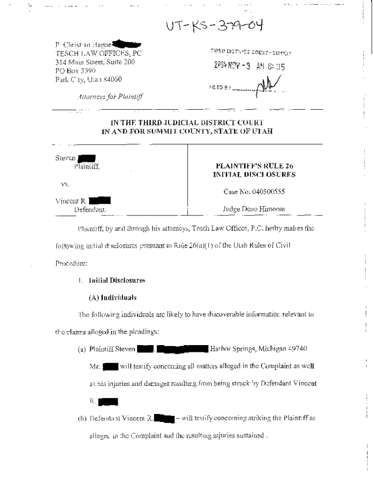 Get the free A04 Plaintiff Rule 26 Initial Disclosures