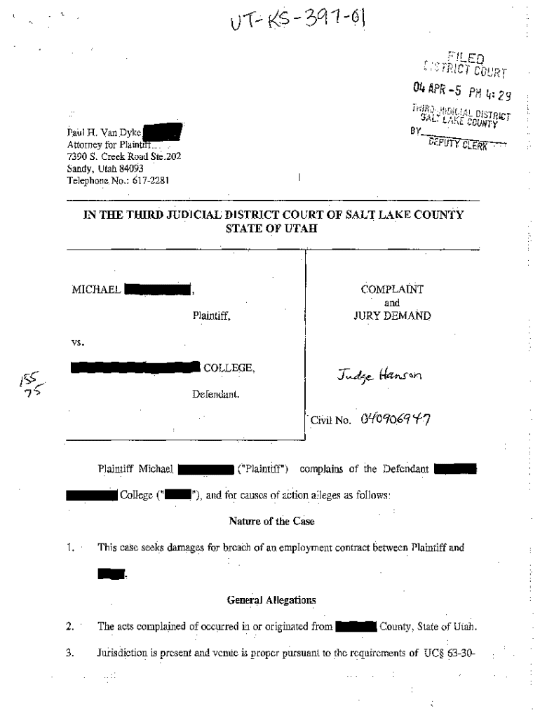 A01 Complaint and Jury Demand - Breach of Employment Contract - Breach of Implied Contract - Breach of Duty of Good Faith and Fair Dealing