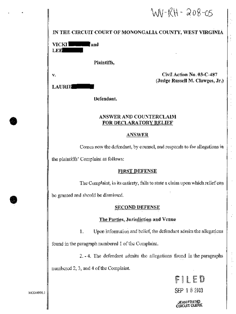 Get the free A05 Answer and Counterclaim and Declaratory Relief