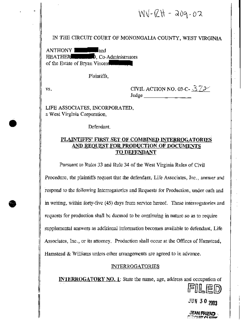 Get the free A02 Plaintiff's First Set of Combined Interrogatories and Request for Production of ...