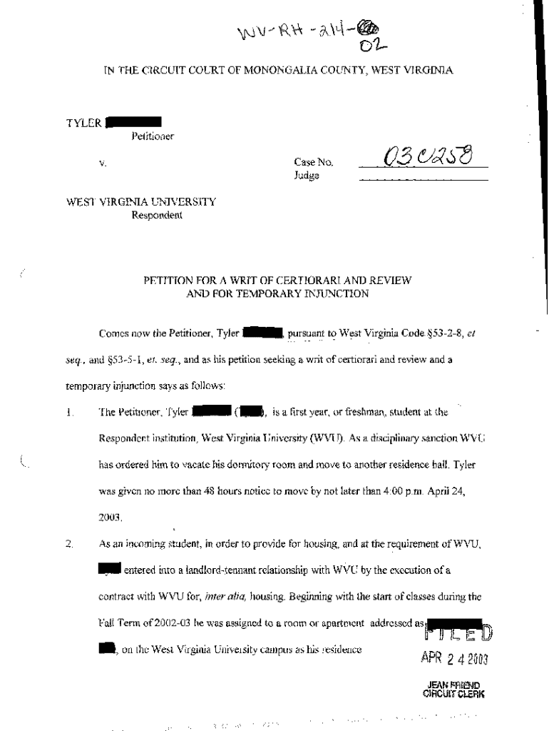 This Petition For A Writ of Certiorari and Review and For Temporary Injunction from Evicting Petitioner from Occupancy of College Dormitory challenges teh disciplinary action whereby Petitioner was