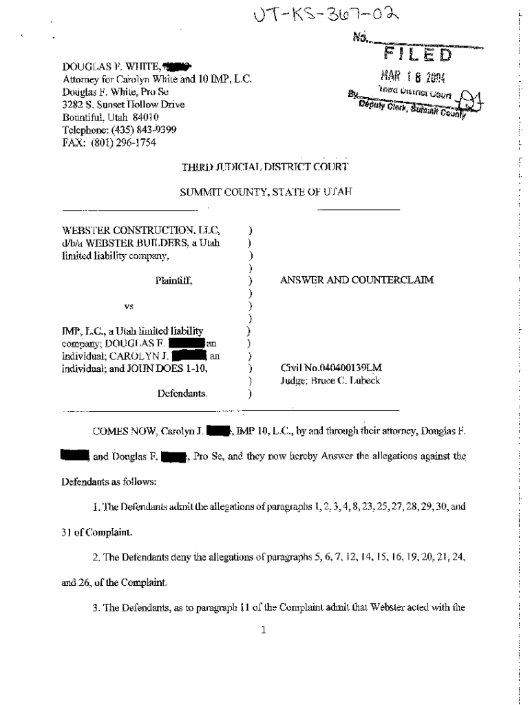 Get the free A02 Answer and Counterclaim