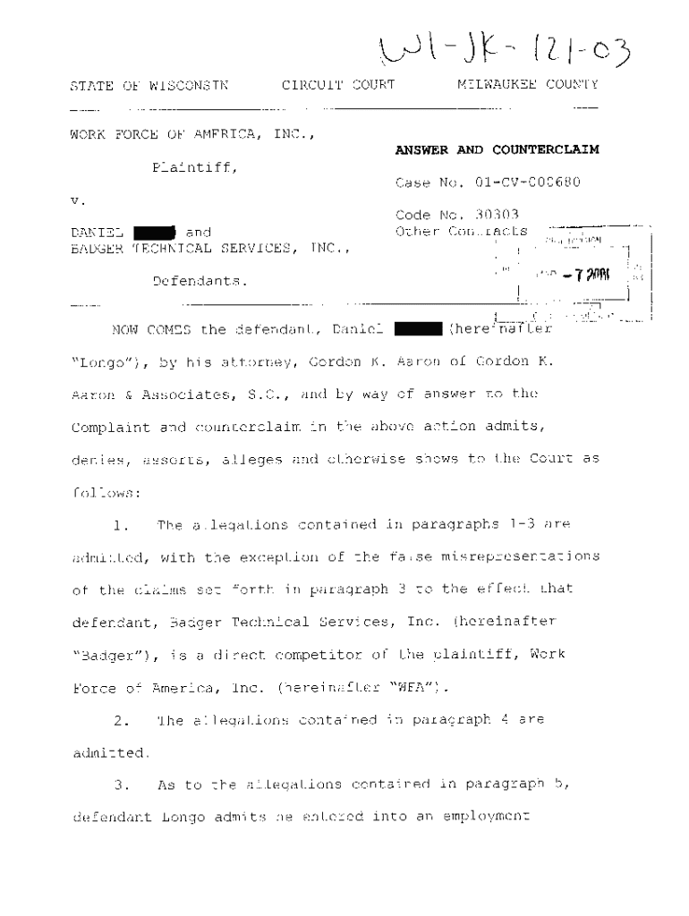 Get the free A03 Answer And Counterclaim