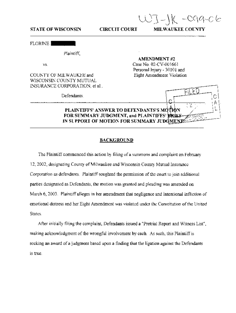 Get the free A09 Plaintiff's Answer to Defendant's Motion for Summary Judgment