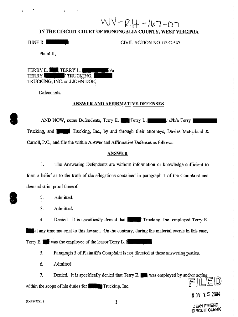 Get the free A07 Answer and Affirmative Defenses