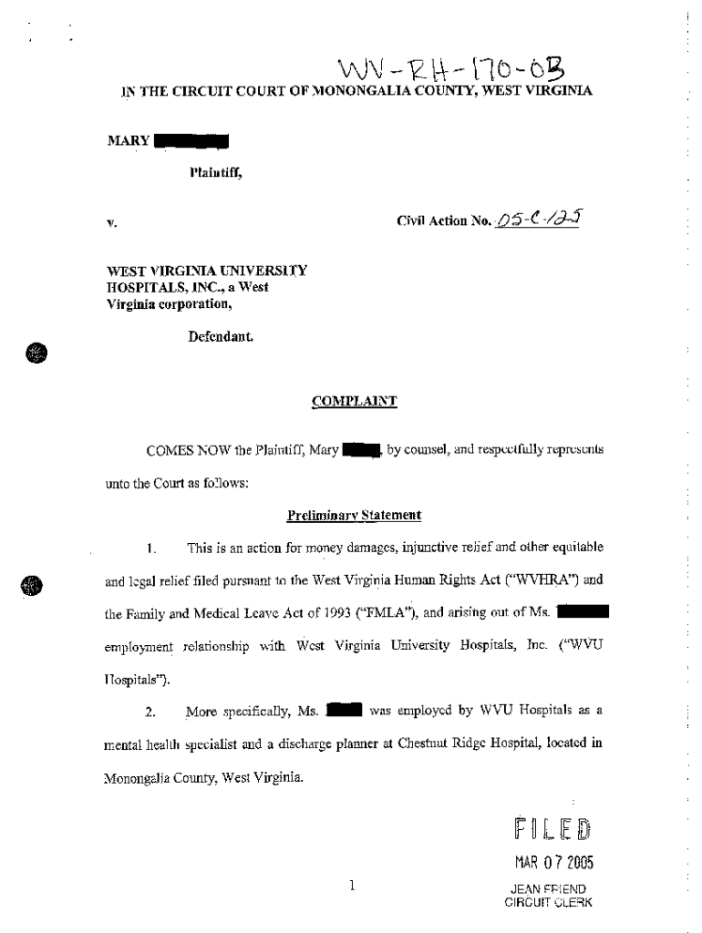 Get the free A03 Complaint for Wrongful Termination Due to Temporary Leave of Absence for Postpar...