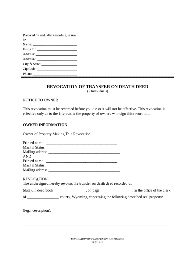 Get the free Revocation of Transfer on Death Deed - Beneficiary Deed for Two Grantors template