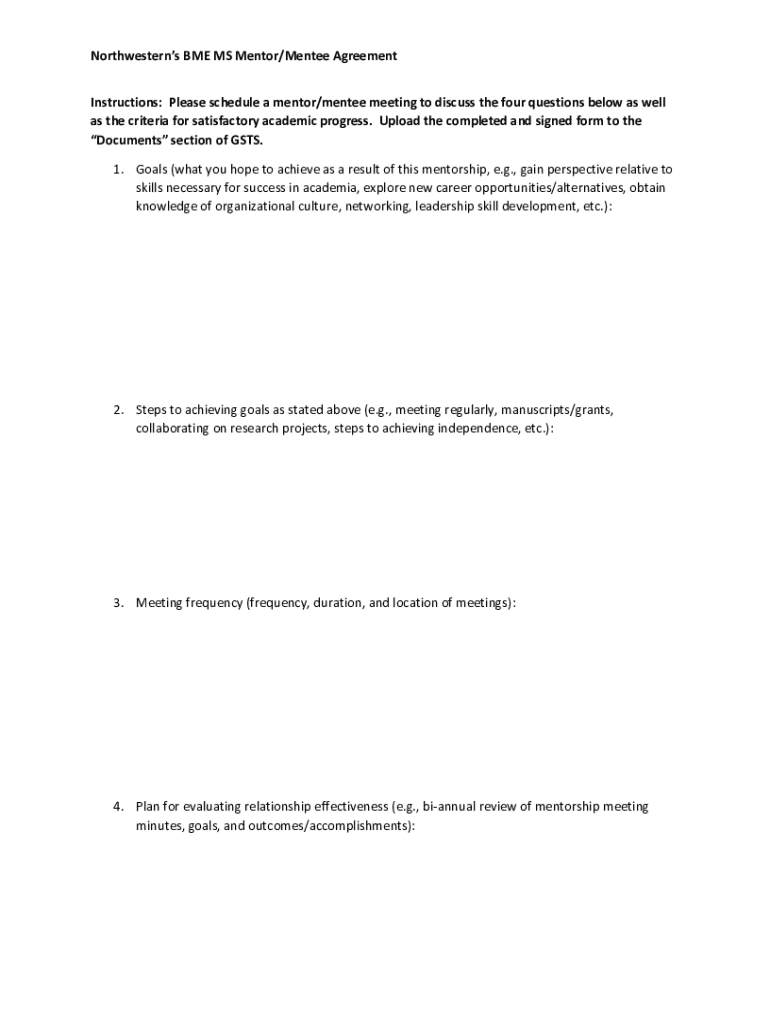 Get the free Northwestern’s Bme Ms Mentor/mentee Agreement