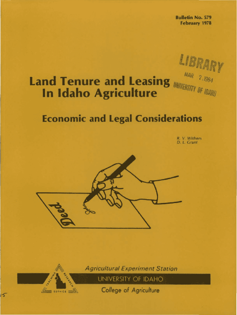 This bulletin provides an overview of land tenure arrangements in Idaho agriculture, discusses the implications of different leasing practices, and examines economic and legal considerations surrounding