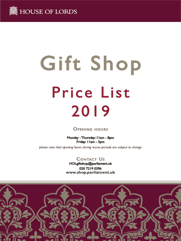 Fill out your UK House of Lords Gift Shop Price online with pdfFiller!