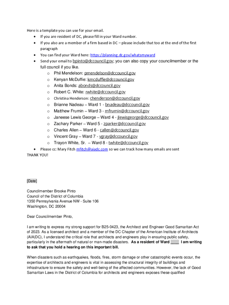 Here is a template you can use for your email. If you are resident of DC, please fill in your Ward number. If you also are a member of a firm based in DC please include that too at the end of the