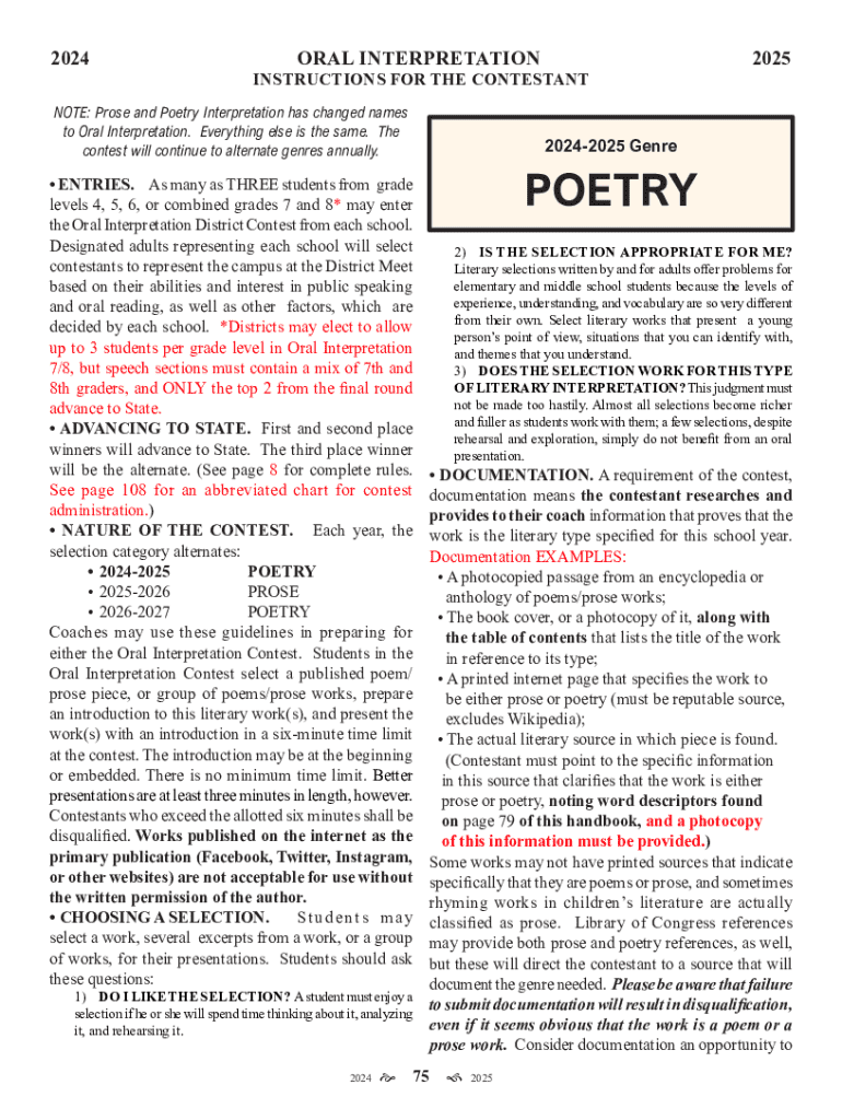 Get the free NOTE: Prose and Poetry Interpretation has changed names