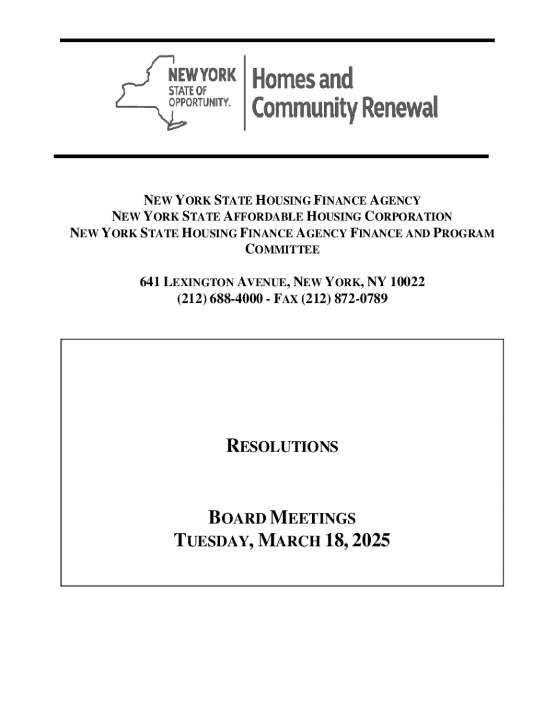 NEW YORK STATE HOUSING FINANCE AGENCY NEW YORK STATE AFFORDABLE HOUSING CORPORATION NEW YORK STATE HOUSING FINANCE AGENCY FINANCE AND PROGRAM COMMITTEE 641 LEXINGTON AVENUE, NEW YORK, NY 10022 (212)