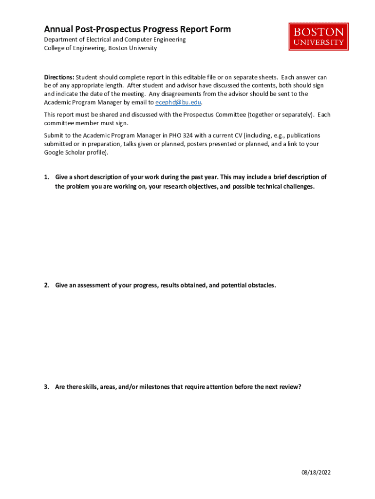 Email, fax, or share your annual post-prospectus progress report form via URL. You can also download, print, or export forms to your preferred cloud storage service.