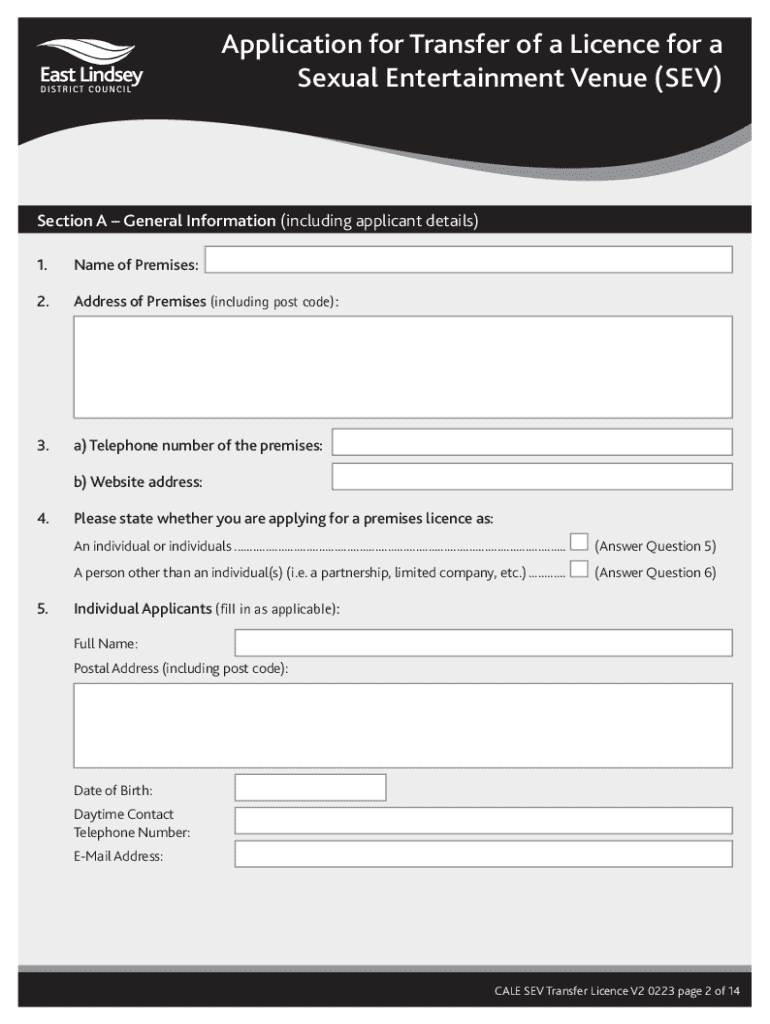 Get the free Application for Transfer of a Licence for a Sexual Entertainment Venue (sev)