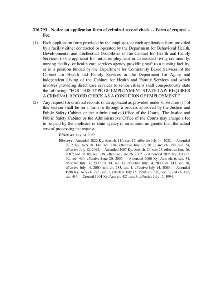 Get the free 216.793 Notice on Application Form of Criminal Record Check