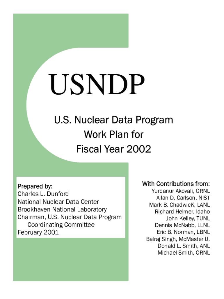 USNDP U.S. Nuclear Data Program Work Plan for Fiscal Year 2002 Prepared by: Charles L. Dunford National Nuclear Data Center Brookhaven National Laboratory Chairman, U.S. Nuclear Data Program Coordinating