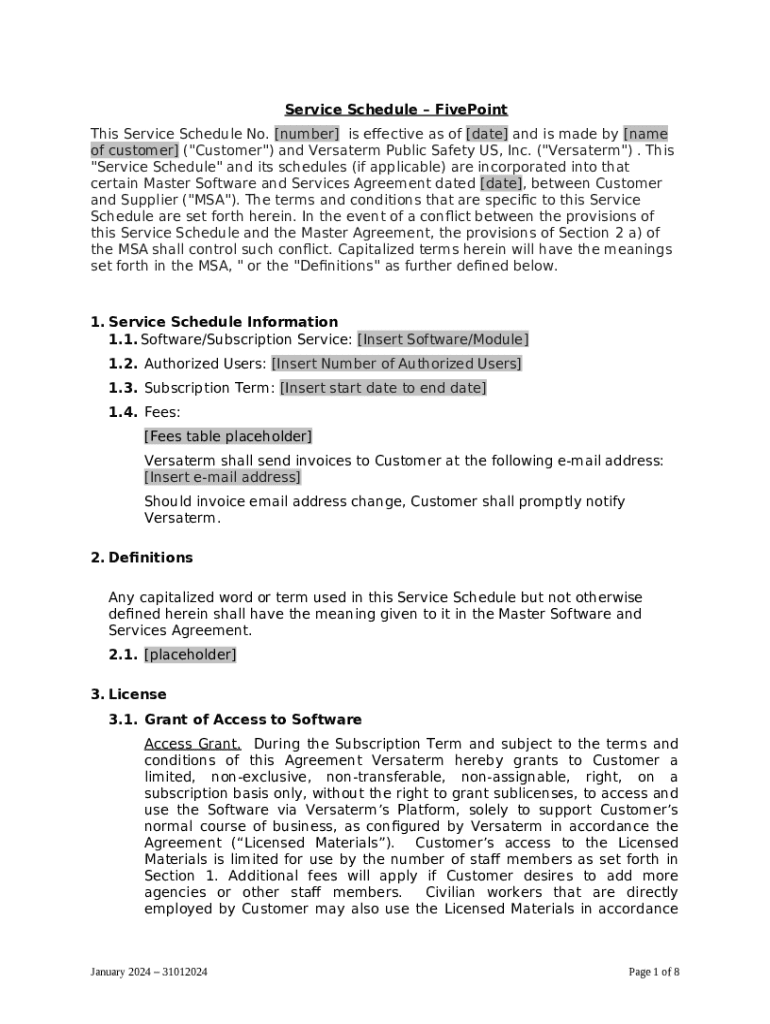 How to fill Service Schedule - Fivepoint word template